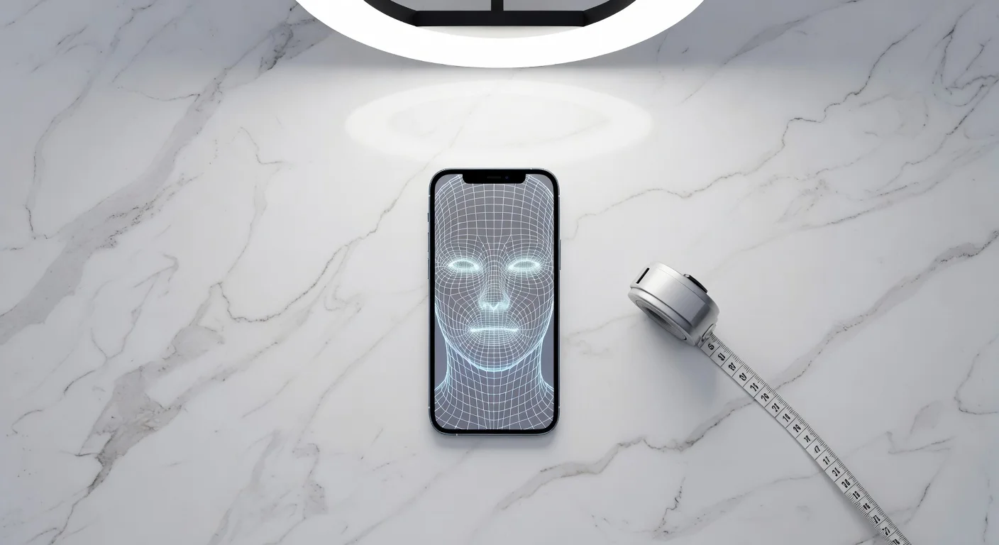 Lighting changes and camera distance heavily distort facial geometry. If you hold your phone 10 inches away instead of 18 inches, the fisheye effect will artificially lower your score.