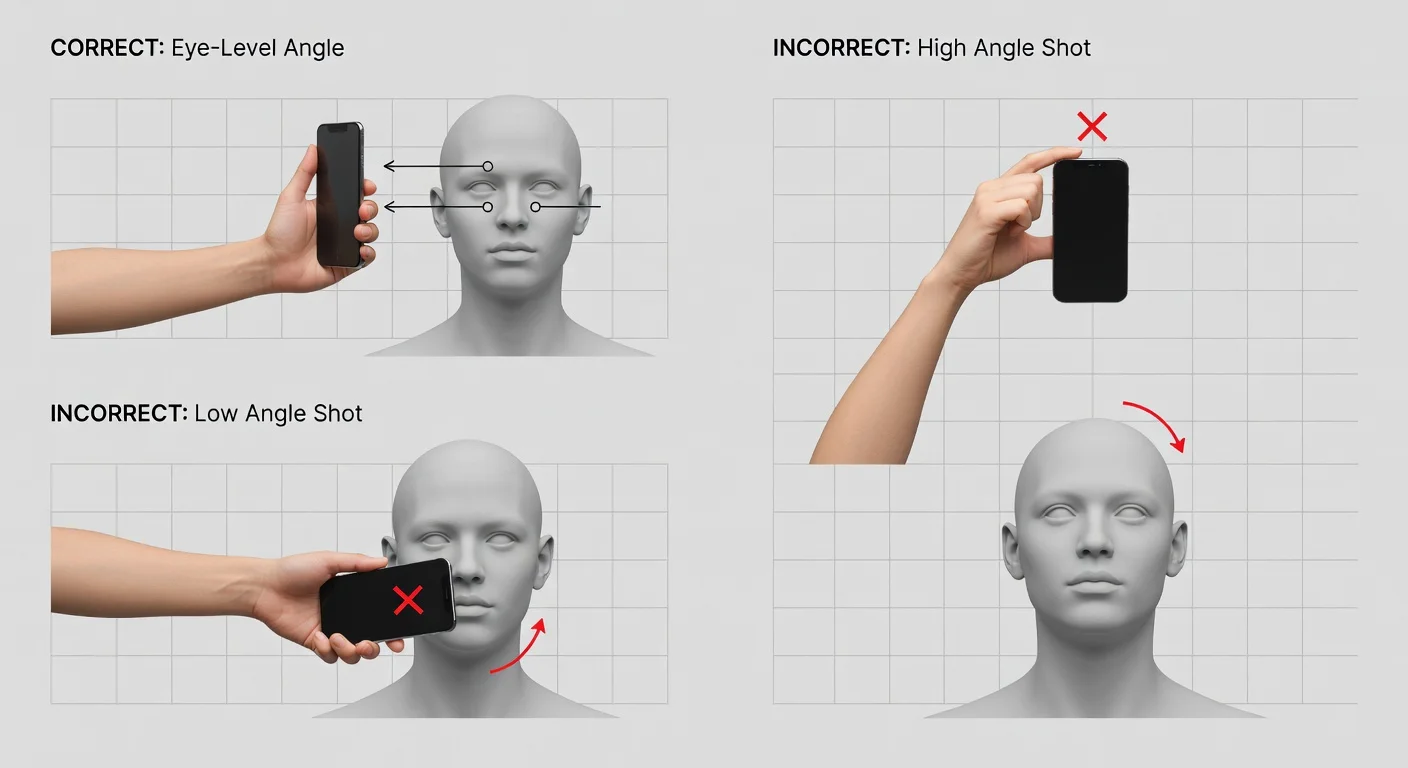 - Angle: Hold the phone at eye level. Taking a photo from below creates a double chin effect. From above, it distorts the forehead.